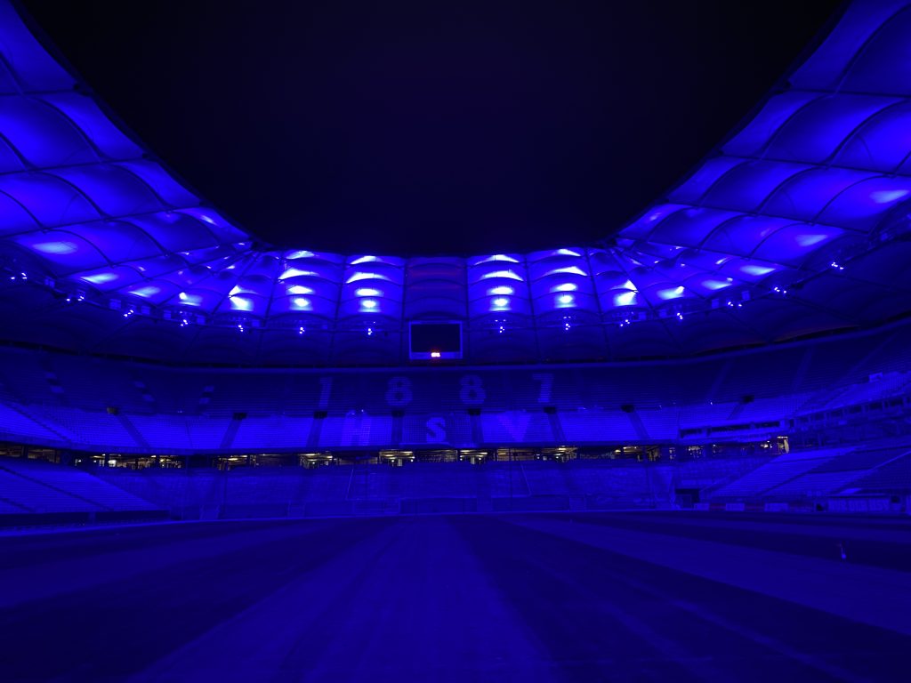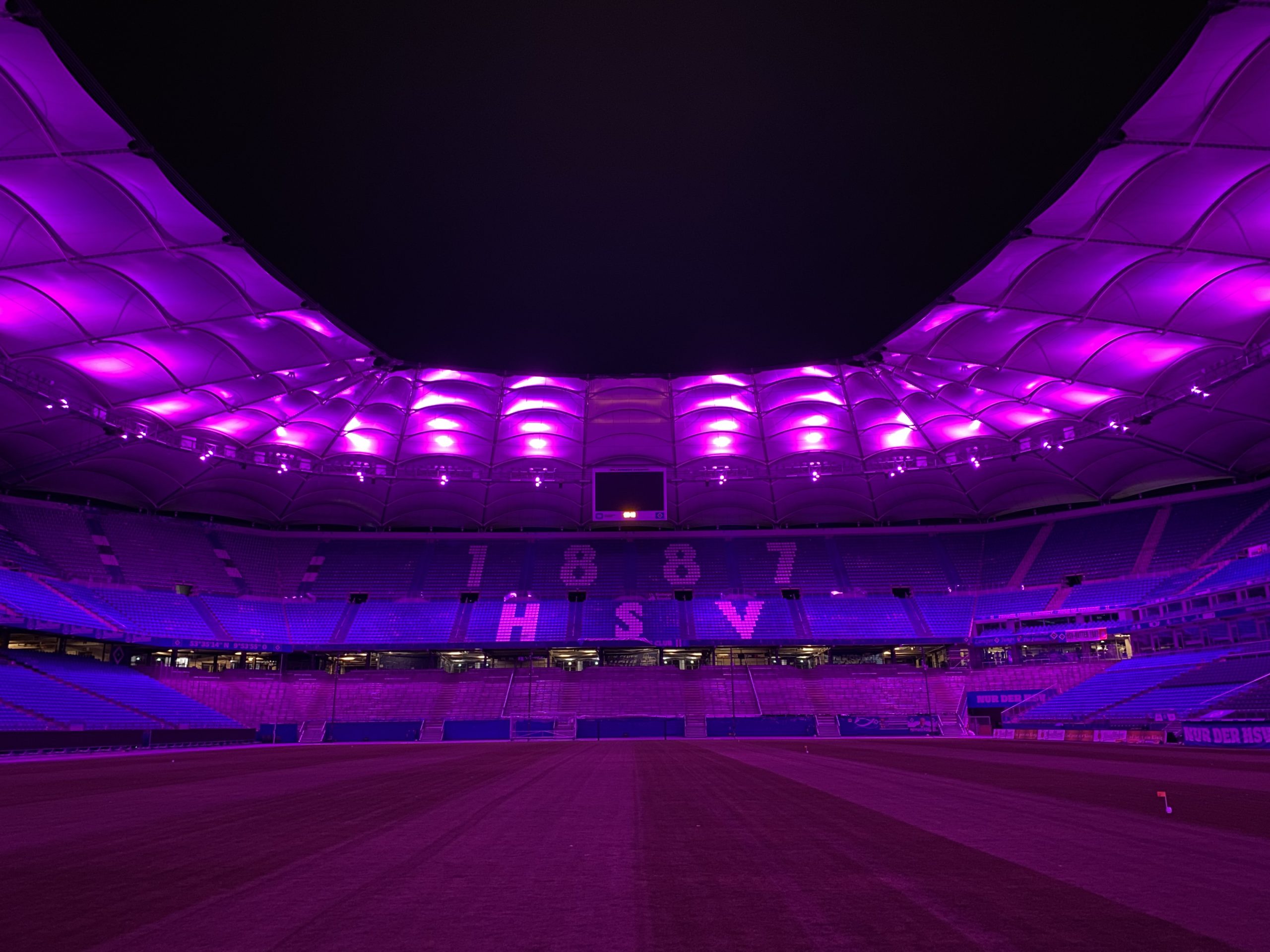 Das Volksparkstadion, eröffnet 1953 und Heimstätte des Hamburger SV, ist eines der größten Fußballstadien Deutschlands mit 57.000 Plätzen (49.000 für internationale Spiele). Im Altonaer Volkspark gelegen, war es Austragungsort der Weltmeisterschaften 1974 und 2006, der Europameisterschaft 1988 und 2024 sowie des Europa-League-Finals 2010. Die von Herzog & de Meuron gestaltete Arena, umgebaut 1998–2000, beeindruckt mit moderner Architektur und lebendiger Fankultur. Für die UEFA Euro 2024, bei der fünf Spiele inklusive eines Viertelfinals stattfanden, wurde das Stadion seit 2022 für 30 Mio. Euro modernisiert. Dabei wurde die Beleuchtung für Spielfeld und Rang-Dach auf eine hochmoderne LED-Flutlichtanlage mit RGBW-Technik umgerüstet. Diese, unterstützt durch Fördermittel, erfüllt den UEFA Elite Level A (2.000 Lux) und ermöglicht farbvariable Inszenierungen, die Spiele und Events wie „Berlin leuchtet“ nachhaltig und spektakulär in Szene setzen.